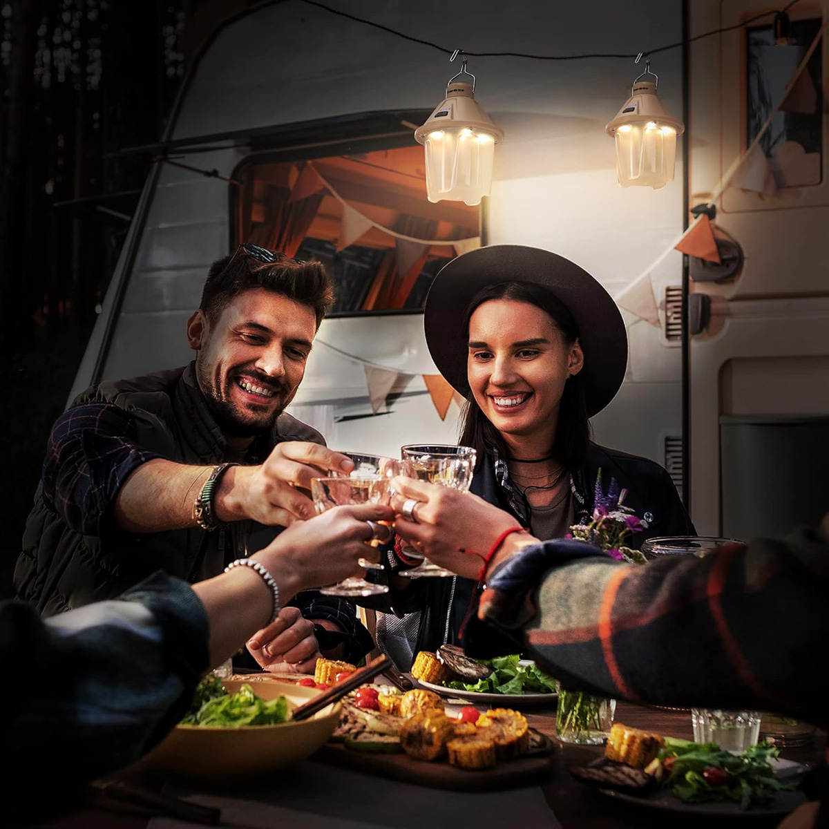 450LM Camping Lantern, USB C Rechargeable Camping Lantern with Magnetic Top&Hanging Hook, 5 Lighting Modes, Pack of 2 – Khaki