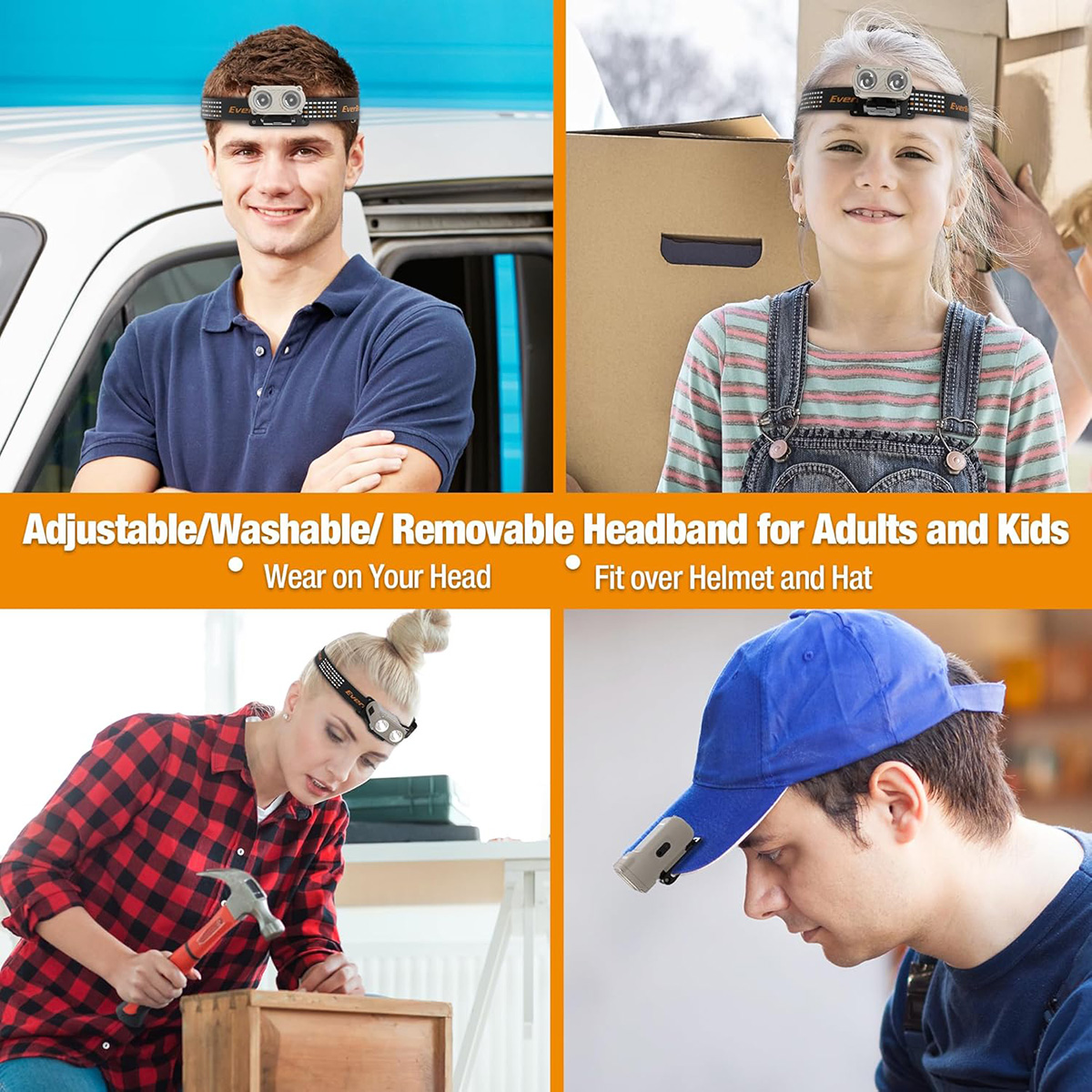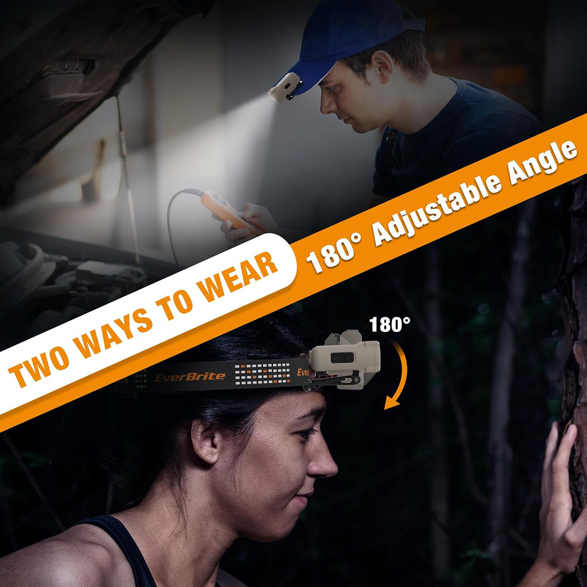 Hat Lights Clip On Rechargeable Headlamp with Motion Sensor, 3 Models LED 180° Adjustable Head Lamp to Wear and Clip