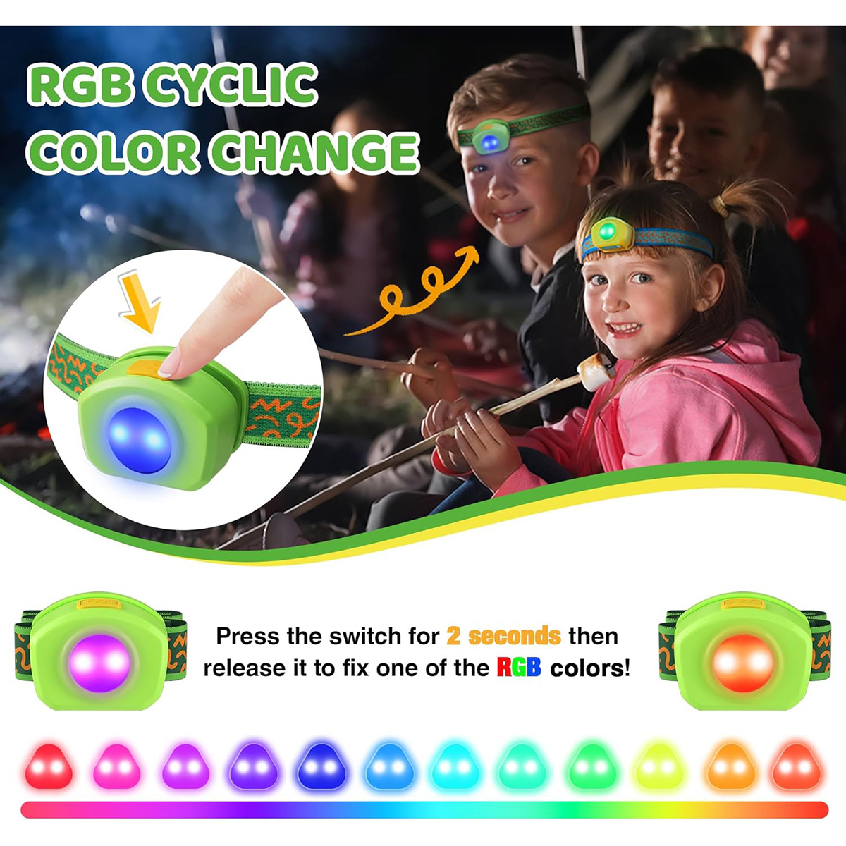 LED Headlamp Rechargeable Kids Headlamp with RGB Mode and Adjustable Headband, 3 Modes Multicolor Headlamp – Forest