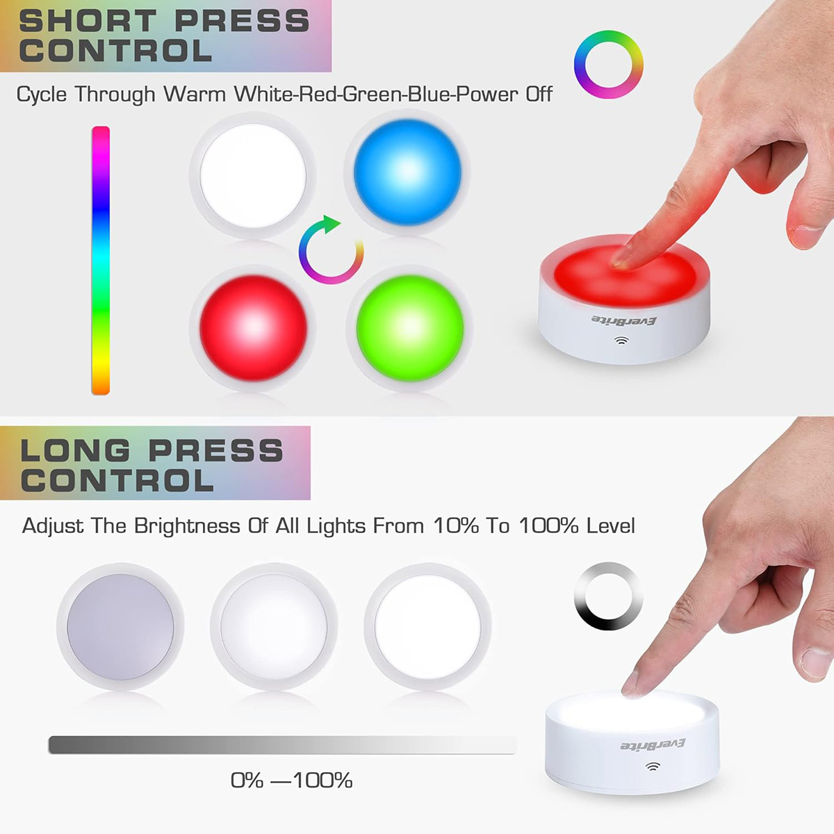 Puck Lights with Remote, Wireless LED Puck Lights Battery Operated, 13 RGB Colors Changing Under Cabinet Lights, Battery Included (6-Pack) – Multicolor