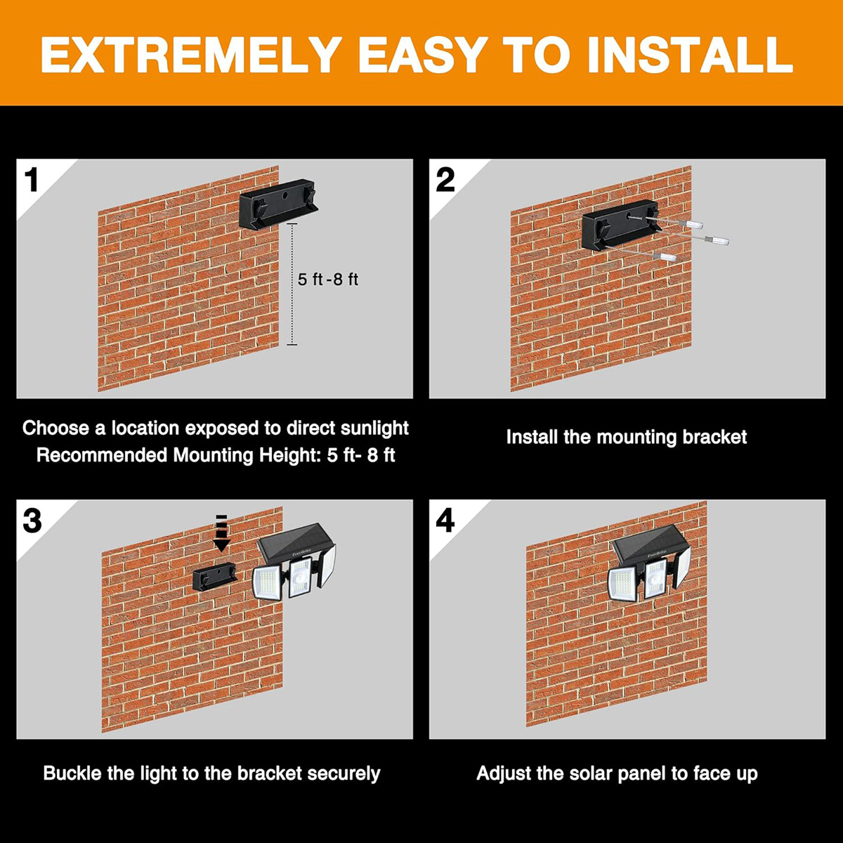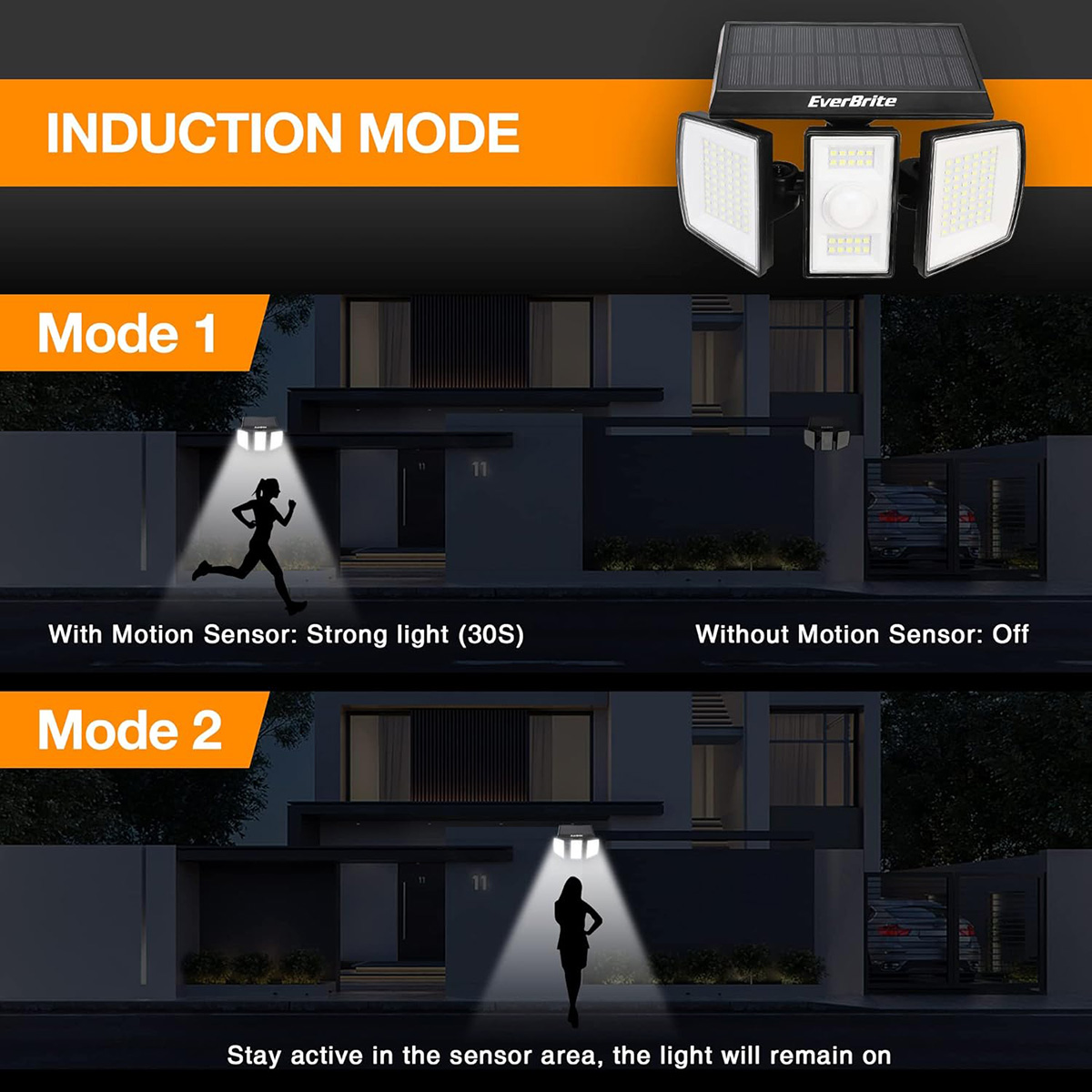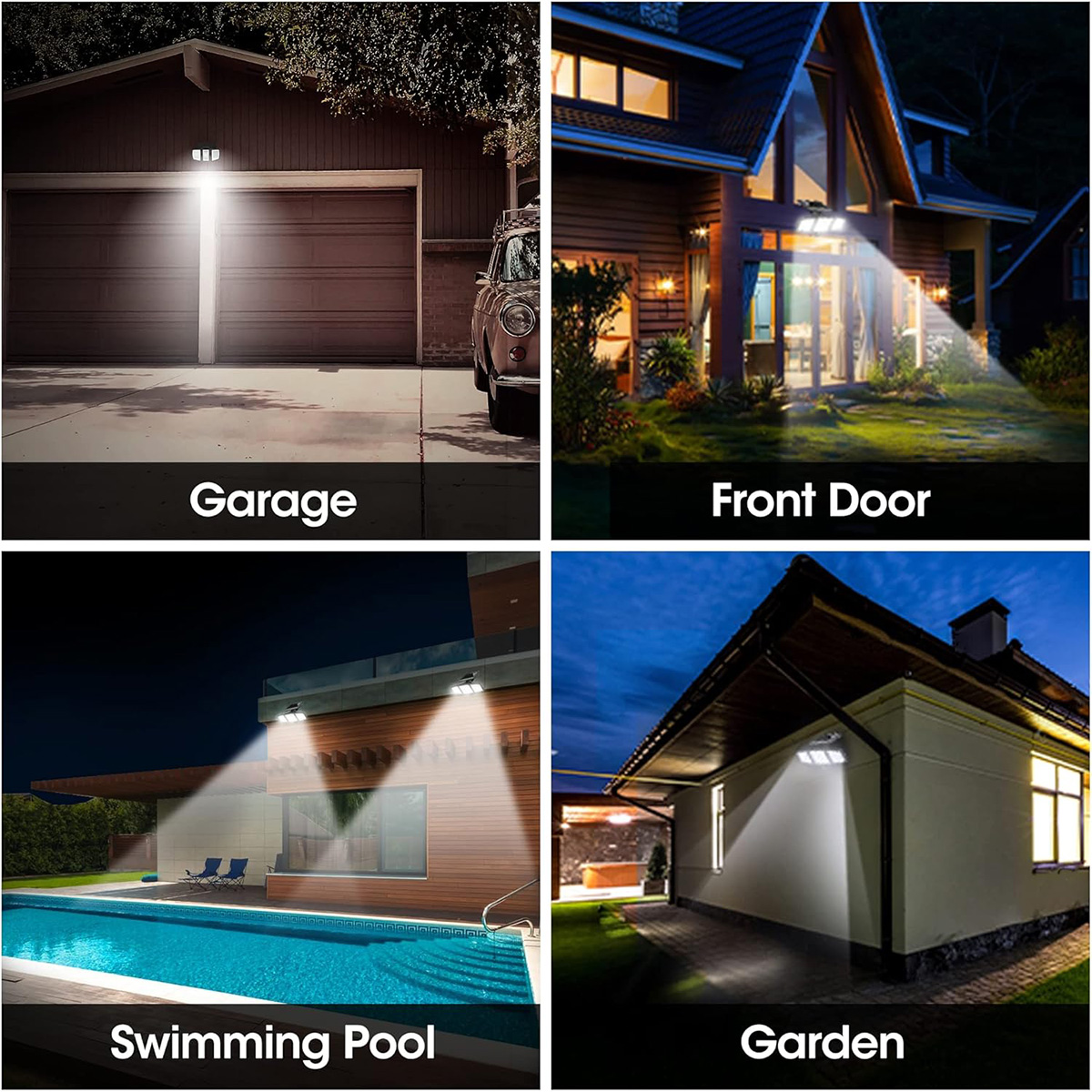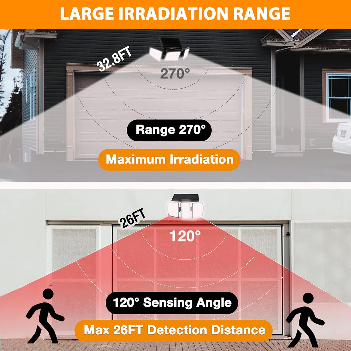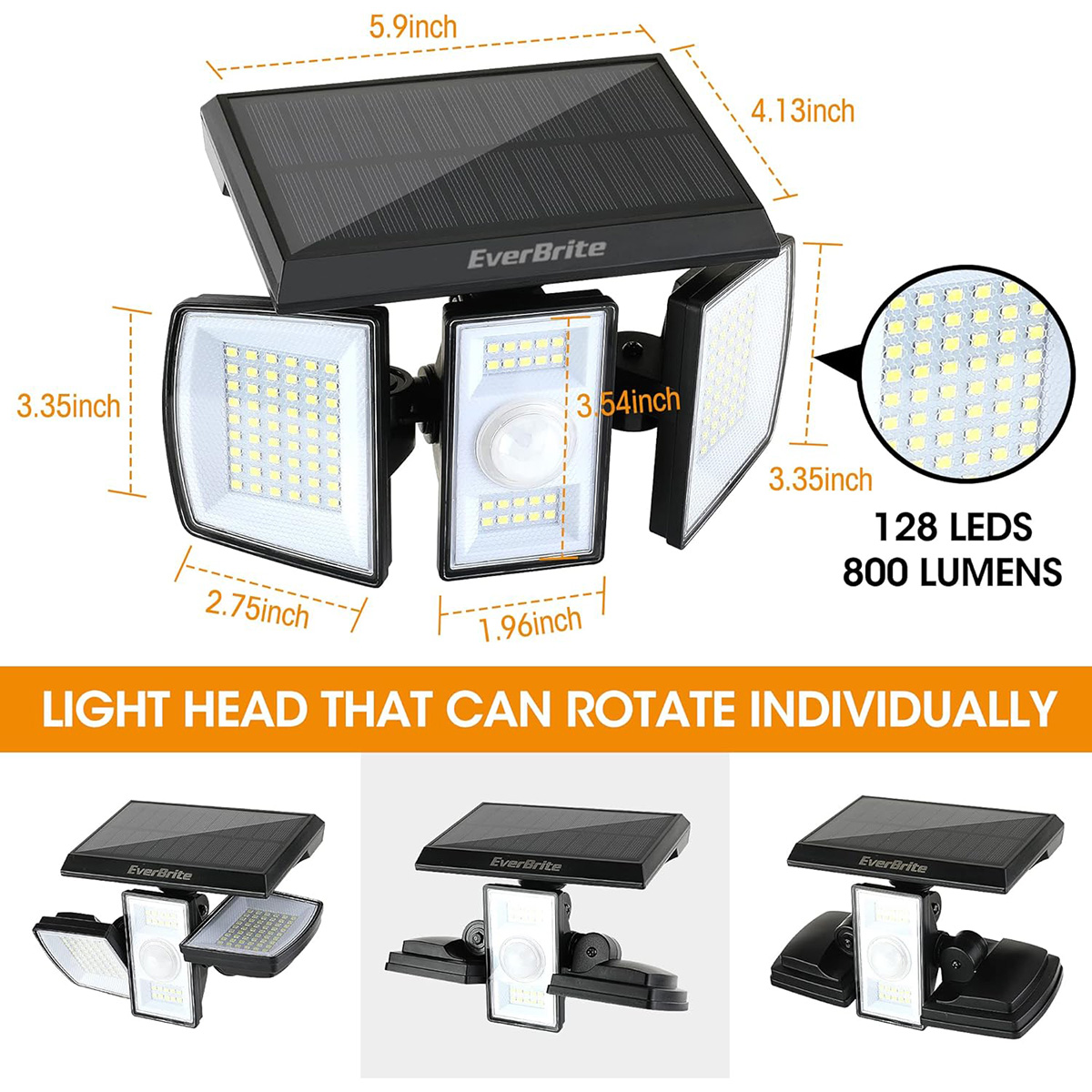Solar Outdoor Lights, 128 LED 7000K Solar Motion Sensor Lights, 3 Heads Security LED Flood Light, 270° Wide Lighting