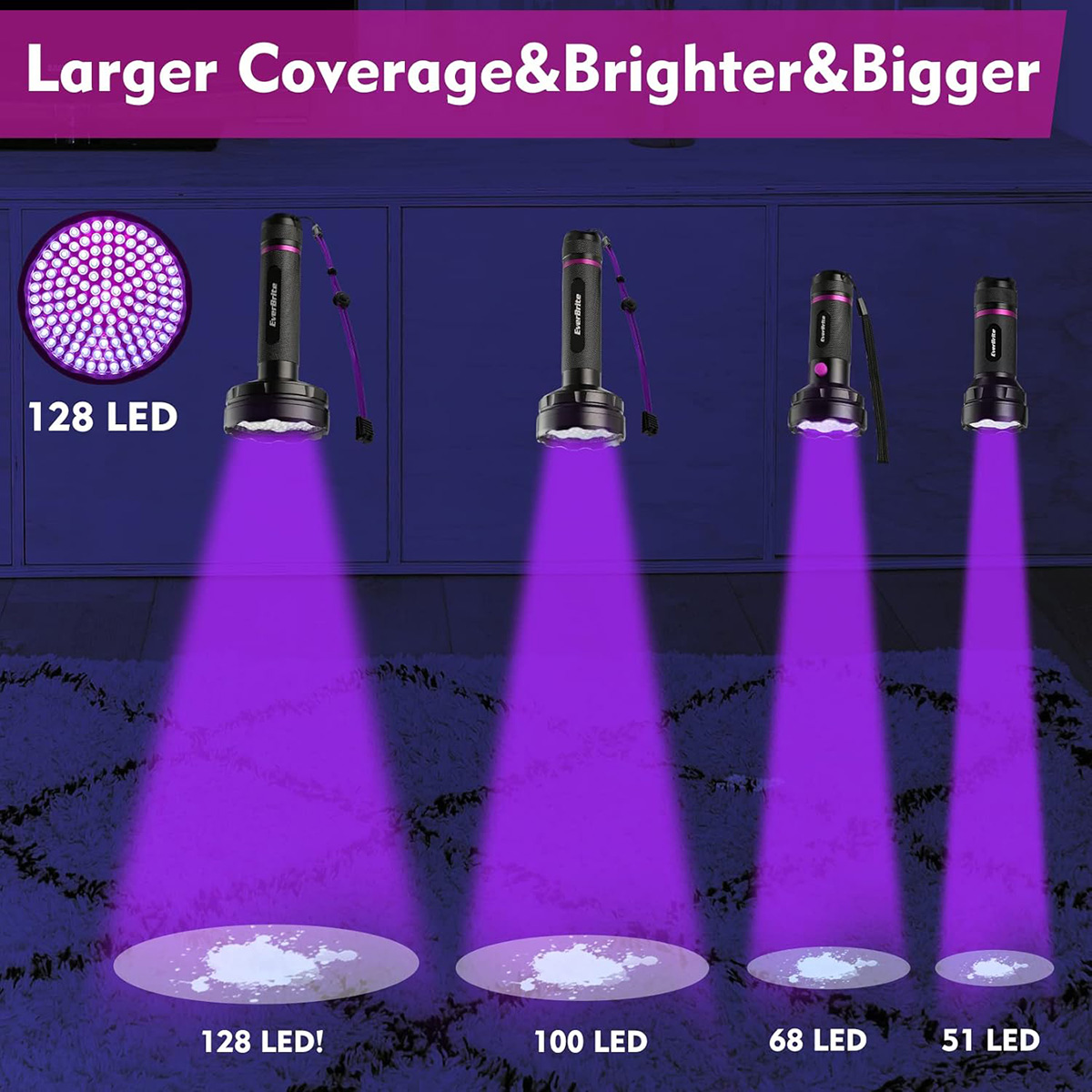 UV Flashlight, 395nm Black Light Flashlight for Pet Urine Detection, Scorpions, Dry Stains, Bed Bug (Batteries Included) – 128 LED